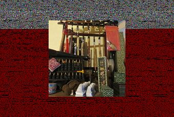 La pièce qui nous attend a tout du capharnaüm chaleureux…Ce n’est pas du fouillis. C’est une plénitude. Entre tapis, plaids, coussins, piles de livres, bibelots, cadres rangés au sol, meubles et lampes, on se faufile jusqu’à la cheminée. Sur le manteau, des foules d’objets cohabitent comme ils peuvent, souvenirs chinois pour la plupart. Dans le foyer, en guise de bois…de multiples œuvres de Madina sont sagement rangées dans des cartons. Et puis, le long de l’escalier, sur chaque marche, elle nous invite à regarder également dessins, photos et calligraphies. Son travail d’artiste.