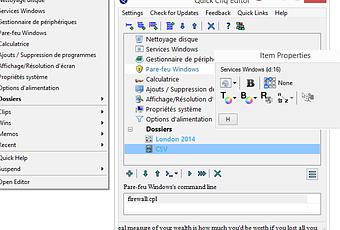 fenêtres ainsi que l'affichage des documents récemment ouverts. Tout ceci hautement personnalisable, avec possibilité de définir des icônes uniques pour chaque raccourci, personnalisation des couleurs de texte et d'arrière-plan de chaque menu, etc...
