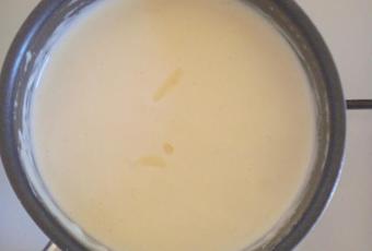 Faites chauffer ,la crème fraîche avec le lait sur feu doux et en suite y ajouter les fromages rapé .