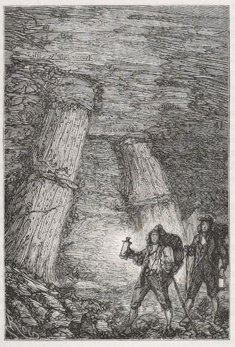Le samedi, à six heures, on repartit. Vingt minutes plus tard, nous arrivions à une vaste excavation ; je reconnus alors que la main de l’homme ne pouvait pas avoir creusé cette houillère; les voûtes en eussent été étançonnées, et véritablement elles ne se tenaient que par un miracle d’équilibre.