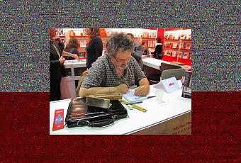 Je tenais à m’acheter un livre, coûte que coûte, Le Journal de Lisée - 18 mois de pouvoir, mes combats, mes passions. Numéro de kiosque en mains, je me mets à sa recherche, étant certaine à l’avance que je le chercherais longtemps, défaitisme oblige quand tu n’as aucun sens de l’orientation. Après avoir marché et même tourné en rond, je finis par dénicher le #246. Rires, bises, et dédicace de Jean-François Lisée, un homme charmant, je reprends ma marche en me laissant aller au gré des livres et des visages ouverts. Après une halte chez Québec Amérique, je finis par me retrouver, comme par hasard, devant Marsi. Il est sous mes yeux sans que j’ai eu à le chercher, toujours derrière le comptoir de dédicaces. Il y a deux personnes qui attendent, dont une qui le contemple dessiner tandis que Marsi se terre dans un silence monastique, puisqu’il ne peut dessiner et parler en même temps. Toute à ma satisfaction de ne pas avoir perdu trop de temps à le chercher, j’aperçois tout à coup la petite table de monsieur Lisée. C’est à ce moment-là que je réalise que La Pastèque et Rogers portent le même numéro de kiosque #246 ... puisqu’ils sont côte à côte !Hum….. oui, je sais, c’est pas fort, fort. Heureusement, je me repère dans les bouts de lignes et les milieux de chapitres et je longe, sans trop me perdre, les couloirs sinueux du sous-texte.