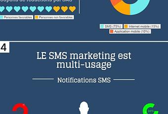 Le SMS Marketing est multi-usageLes utilisateurs de mobile attendent une communication individualisée. En 2013, ils sont 80% à être favorables au SMS de leurs marques favorites et 72% favorables aux SMS utiles. Le SMS est le canal mobile le plus plébiscité (75%) pour la réception des offres commerciales comparé à l'Internet mobile (15%) et à l'application mobile (10%).