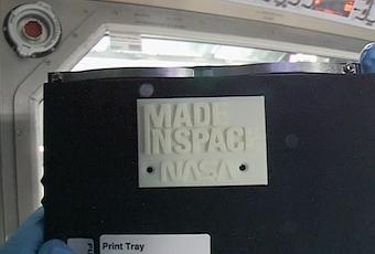 Cet objet « extra-terrestre » conçu par l’homme est une simple plaque de polymères marquée par les logos en relief de la NASA et de société Made in Space.