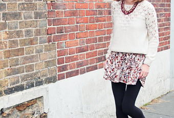 Right now, our apartment is undergoing renovations, so we're staying at our friends' place. The advantage is that we're discovering life new neighborhoods. Here's a look that we shot in Pantin, against a brick wall that reminds me of Brick Lane in London. For the new stuff, there's this burgundy and gold ethnic breastplate necklace, this pretty blurred-print short with prints that oscillate between leopard, flowers, and marble. For the rest of the look, I chose this perforated sweater, some black boots, and my sheepskin-style oversized coat that's as warm as a blanket. I hope this folky autumn look will give you all some ideas! xx Emilie