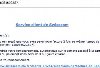 La méthode est bien rodée. Et la tentative de “phishing” est presque parfaite. Je ne suis pas le seul dans mon cas. J’ai reçu cette semaine un mail bidonné du service client de Swisscom dont lequel on m’apprend que j’ai payé à double ma facture de téléphone du mois d’octobre. Et pour faire sérieux j’ai même un numéro de dossier et bien attendu un lien à l’apparence véridique puisqu’il reprend un lien “plausible” de Swisscom. Je ne suis pas tombé dans le piège car j’ai constaté 3 anomalies. La première concerne mon adresse mail. L’adresse utilisée n’a jamais été communiqué à Swisscom car j’utilise une autre pour mes relations avec les fournisseurs. La deuxième incohérence c’est le lien sur lequel je dois appuyer pour confirmer le remboursement et qui ne contient pas le “s” de sécurité dans le http, ni un cadenas. Et enfin l’adresse de l’envoyeur, trafiquée maladroitement: “[email protected]”.