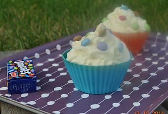 Moi j'ai fait des au chocolat (recette ici) avec une chantilly au chocolat blanc, à l'intérieur évidemment ce sont des smarties