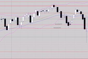 Après le retracement de 50% de la hausse de juin 2012 à juin 2014 (bougie du mois d’octobre qui représentait une forte pression vendeuse), la bougie de ce mois de novembre se forme précisément entre le support des 4110 points et la résistance des 4400 points (tout comme la bougie d'août d'ailleurs)