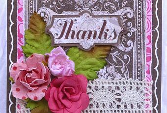 Materiel : paper tape de The Paper Studio, papier rose de Bella blvd, tampon de tim Holtz, encre marron de Stazon, fleurs de Recollections et Making Memories, feuilles de I Am Roses,ruban de Hobby Lobby.