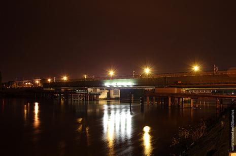 00h05 : Le calme... Les cheminots attendent le dernier passage d'un train sur le viaduc d'Oissel avant de débuter les travaux de mise en service du nouveau tablier. Travaux qui dureront 35 heures non-stop.