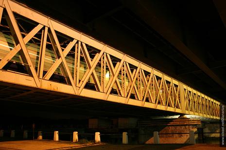 00h24 : Le 'voyageur' n°13123 est le dernier train à emprunter le vieux pont. Les travaux vont pouvoir commencer...