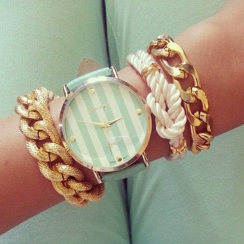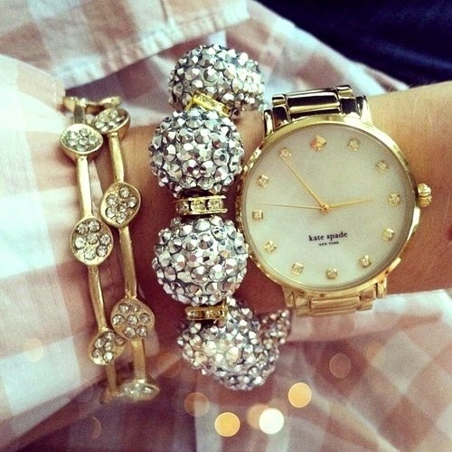 Je suis une grande fan de poignets remplis de bijoux dorés et brillants. Y a une sorority sister qui sommeille en moi, je crois bien...