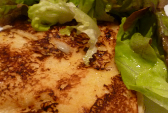 Présenter le sandwich chaud coupé en deux dans la diagonale, sur 2 feuilles de laitue