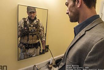Le photographe Devin Mitchell, a voulu montrer via une série de clichés la face cachée de ces soldats sous l’uniforme, dans le reflet du miroir, dans son nouveau projet baptisé « L’art du vétéran ».