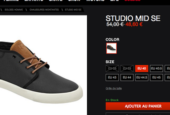 Au cours de mes achats, j’ai pris une paire de DC Shoes Studio Mid, que je suis allé chercher directement en boutique et que j’ai payée 90 euros. Jusqu’ici, rien de vraiment ouf. En rentrant chez moi je décide quand même de jeter un œil en ligne pour voir à quel prix sont affichés ces jolis souliers. Grand bien m’en a pris. Sur le site officiel de la marque, DC Shoes, la paire est affichée près d’une quarantaine d’euros de moins. Aujourd’hui encore, elles sont disponibles sur le site, avec une petite ristourne supplémentaire en ces périodes de soldes.