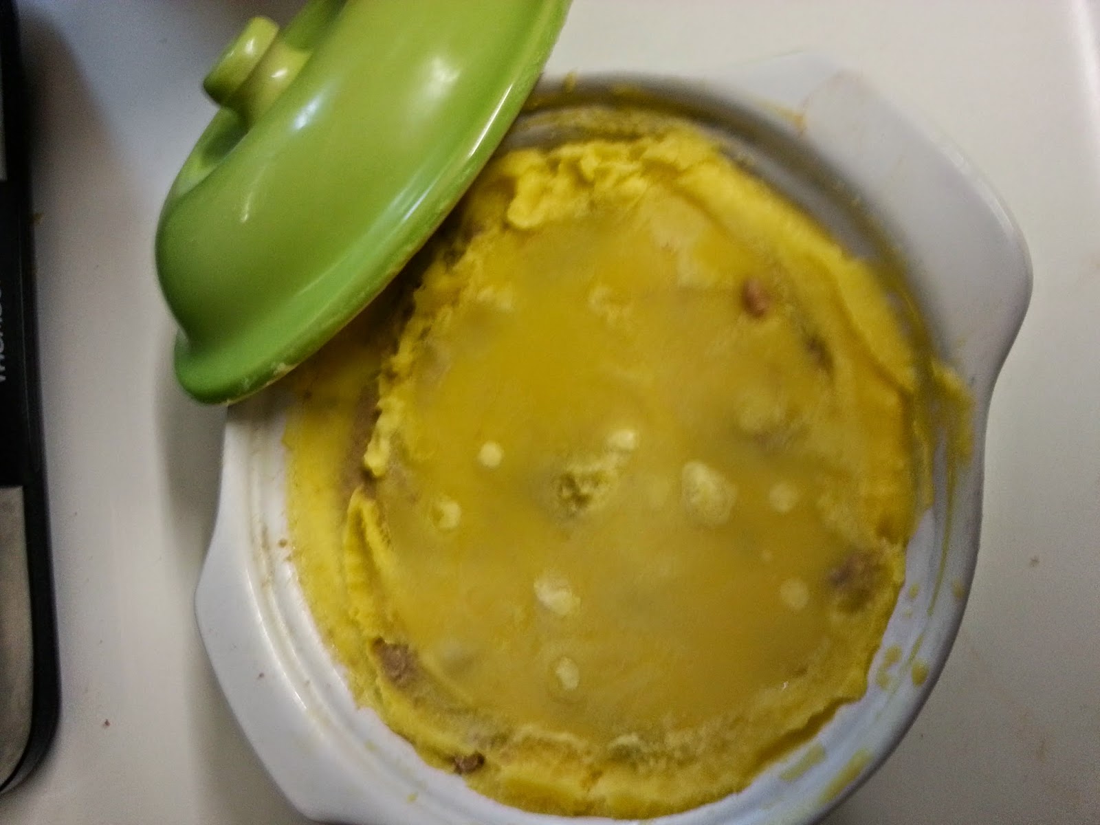 2. Filmer la terrine et la passer à la vapeur durant une 10 eme de minutes. Vous constatez qu'un liquide jaune est en surface.