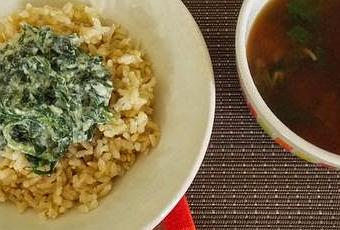 J'ai servi ma sauce aux fanes avec du riz et ma soupe miso aux fanes.