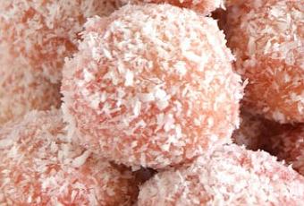 - Une fois sortit du four, rouler les boulettes encore chaudes dans de la confiture puis dans la noix de coco .