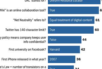 L’institut de recherche Pew Center s’est intéressé au niveau de culture générale concernant la technologie numérique utilisée en masse aujourd’hui en menant un court questionnaire* sur la population américaine, en l’honneur du 25ème anniversaire du Web. L’auteur de cette étude, Aaron Smith, chercheur senior au Pew Center explique qu’il pourrait être intéressant pour les professionnels du numérique de connaître les lacunes et différences de connaissances sur la culture numérique globale.