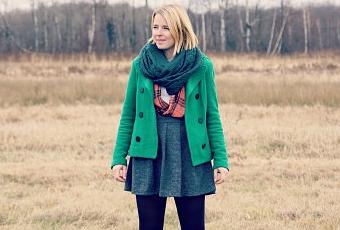 Détails de mon outfit : Chemise de chez Boutique Kitsch, jupe Vero Moda, dénichée chez Boutique Vestibule, collants Mondor, bas de laine volés à chéri, bottes Palladium et foulard trouvé dans une petite boutique de décoration à Lancaster, en Ontario.