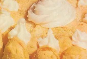 Remplir le creux avec de la glace à la vanille. Bien tasser. Recouvrir de biscuits.