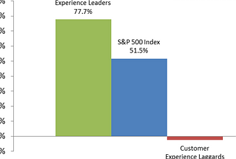 Pour le savoir le graphique de Watermark Consulting ci-contre en donne une bonne idéeDe 2007 à 2013, les entreprises leaders en expérience client ont surperformé l'ensemble du marché boursier, avec un rendement total de 25 points de plus que l'indice S&P500
