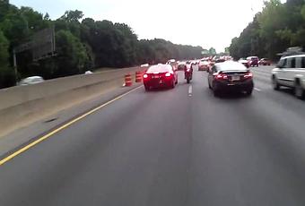 Sur une autoroute près d’Augusta (Géorgie, Etats-Unis), un motard slalome entre les véhicules en plein ralentissement lorsqu’un automobiliste se rabat devant lui. Le motard tente de freiner mais il va trop vite et il rentre violemment dans l’arrière de la voiture en question. Un autre motard qui le suivait a filmé toute la scène…
