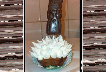 Enfourne 30 min, laissez tièdir et démoulez et attendez qu'ils refroidissent complètement avant de décorer avec la crème comme sur la photo et pour un effet rigolo plantez une sucette père noël en chocolat
