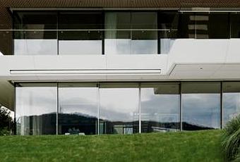 Novateurs, les matériaux utilisés pour la façade sont des éléments en fibre C (entreprise familiale autrichienne Rieder). La membrane extérieure de la maison, comme une membrane en béton, est étanche et flexible. Design, elle s’adapte à toutes le formes, idéale pour l’architecte. Que ce soient des courbes, des constructions rectilignes, des murs obliques ou droits, des toits ou des façades, tout semble possible pour l’architecture de la maison ou du bâtiment. Ce qui donne une sensation générale de construction sortie d’un moule.