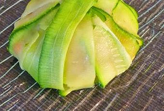 Enfin couper les courgettes en tagliatelles et les faire cuire dans de l'eau chaude pendant 5 minutes.