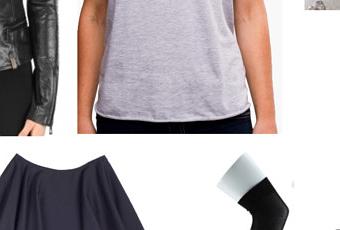 Manteau de cuir: Rudsak 695$ – T-Shirt: La Montréalaise 40$ – BO de chat: Mimi Hammer 15$ – Bagues vintage: Atelier D’Oanh 25$ – Jupe noir: Betina Lou 140$ – Mi-Bas: Aldo 15$ – Bottillons: Hibou 150$