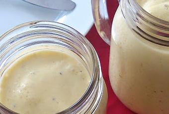 C'est ce que j’ai décidé de faire ce matin en servant dans des tasses Bernardin un lassi à la mangue et Cardamome! Peu de gens connaisse et j'étais bien contente de faire connaître le lassi à mon invitée! Le lassi est une boisson qu'on sert en Inde pour rafraîchir le palet entre les plats ou pour adoucir un met épicé! Originalement, ça se fait avec du yogourt, j'ai décidé de l'adapter de manière végane!