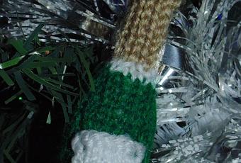Parce que j'aime toujours apporter une touche perso à la déco. J'ai réalisé ces petites bouteilles de champagne au tricot.