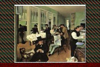Les "Saints Patrons" Jean Dominique Ingres et Eugène Delacroix formaient le noyau de sa collection. Manet y tenait une place à part, ne voit-on pas une parenté avec Un bureau de coton à la Nouvelle-Orléans, 1873.