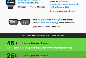 Une étude d'Ipswitch, fournisseur de logiciel, prévoit qu'un tiers des entreprises européennent verront arriver les wearable devices au sein de leur structure, dont 34% d'entreprises françaises, plaçant le pays comme pionnier dans l'adoption de cette technologie. Et cela, devant l'Allemagne dont 33% des entreprises prévoient cette introduction rapide et 25% des entreprises britanniques.