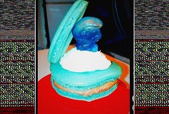 les coques: 2 blancs d'oeuf ( placez la veille au frais), 60 g de poudre d'amande, 110 g sucre glace, 20 g de sucre, colorant de bleu