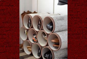 1) Rangement chaussures en tubes empilés