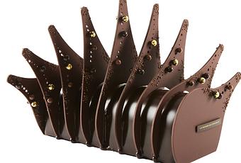 Une boule totalement Maboule pour le célèbre chocolatier qui rajeunit chaque année dans sa créativité plus que ludique et franchement rigolarde. Une jolie boule à base de chocolat noir, ganache au vin chaud entre deux coques de macaron, et des coques d'orange confite et de gingembre.