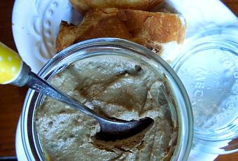 Porter 30 cl de vin blanc sec à ébullition et ajouter 250 g de foies de volaille dénervés. Laisser cuire 3 minutes et égoutter. Faire fondre 80 g de beurre au micro-ondes. Mixer les foies avec le beurre, 2 cuillères à soupe de pineau des Charentes. Saler, poivrer. Mettre en bocal et placer au réfrigérateur.