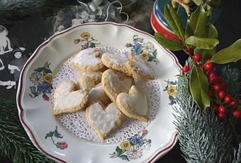Abaissez la pâte. Saupoudrez de sucre glace. Découpez des coeurs à l'emporte-pièce. Posez sur une plaque à pâtisserie recouverte de papier cuisson et faites cuire à 180°C Th. 6 pendant 10 minutes. Laissez refroidir sur une grille.