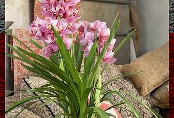 Le Cymbidium en pot a des feuilles étroites et allongées qui ,e sont pas très élégantes lorsque la plante est défleurie. De longues tiges portent six fleurs ou plus. L'éventail des couleurs du cymbidium va du jaune au marron en passant par le vert, le rose et le rouge. Plus la plante prend de l'âge et plus elle peut produire de tiges.