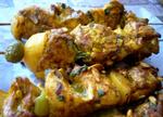 Ce midi, je pensais qu'entre copines nous allions déjeuner sur la terrasse au soleil. Pas du tout il pleuvait non stop, heureusement j'avais prévu des brochettes faisables au four. Cette recette sent bon les vacances et les épices. Le poulet a mariné toute la matinée, est resté très moelleux. C'était très bon. J'ai accompagné ces brochettes de bâtonnets de courgettes poêlées mais elles auraient été très bonnes avec une salade de mesclun.