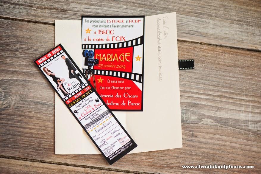 Sophie et Thomas sont déjà depuis longtemps attires par l’Amérique, c'est pour cela qu'ils ont choisi le thème de mariage "Cinéma- Hollywood chic". Comme lieu de réception, leur choix s'est porté sur le magnifique Château de Bénac caché au cœur de l' Ariège.