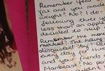 Les deux jeunes gens avaient rendez-vous dans un restaurant et Louisa y est allée à l'avance pour donner un mot à une serveuse qui avait pour mission de la remettre au jeune homme. Et bien sûr, elle, est partie. Elle avait écrit : " Salut, désolée. je ne peux pas te voir ce soir. Tu te souviens il y a huit ans quand j'étais grosse et que vous vous moquiez de mon poids ? Non ? J'ai passé les trois dernières années à manger moins d'une pomme par jour, donc j'ai décidé de sauter le dîner ce soir. Peut-être que tu ne te souviens pas ou que tu ne veux pas te souvenir de ce que j'étais il y a huit ans, quand je n'étais pas assez désirable pour que tu me traites comme un être humain ".