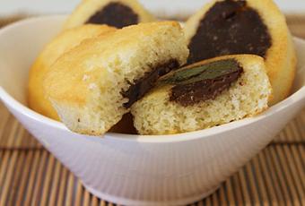 7. Procédez au ‘montage’ de vos financiers : Répartissez dans le fond de chaque moule une bonne cuillère à soupe de pâte à financiers. Ajoutez ensuite l’équivalent d’une petite cuillère à café de Nutella ou d’autre pâte à tartiner, puis recouvrez le tout par un peu de pâte à financiers.