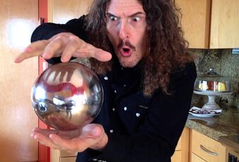 Dans sa cuisine, un homme se prend pour un télékinésiste en faisant flotter une orbe dans le vide.