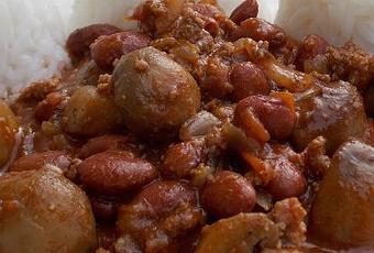 Assaisonnez et ajoutez une pincée de sucre. Ajoutez les haricots et les champignons et cuire à mi-couvert pendant 30 min. Rectifiez l'assaisonnement. Vous pouvez épicer la sauce en ajoutant du piment d'Espelette.
