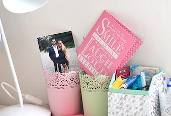 Pour terminer avec ce qu'il se passe sur mon bureau, niveau déco je n'ai pas fait d'effort puisque nous sommes en pleine recherche d'appartement pour déménager, donc je me réserve pour le prochain appartement. Mais quand même, pour ce qui est du bureau, c'est mon copain qui m'a offert celui-ci, vous ne voyez pas mais il est blanc avec les pieds en bois naturel, très "scandinave" il l'avait trouvé sur LaRedoute, et dessus j'ai mis une jolie lampe en fer articulé fer, provenant de chez LightOnline, spécialiste du luminaire, d'ailleurs je compte bien me faire plaisir pour ma nouvelle déco :)Et pour ce qui est des rangements, des pots en fer de chez Ikéa et des box font l'affaire pour le moment, d'ailleurs si vous avez une idée d'où trouver des rangements jolis et simples je suis à l'écoute!