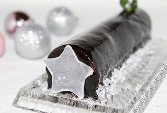 - Décorer des étoiles de chocolat et des feuilles de menthe cristallisées.