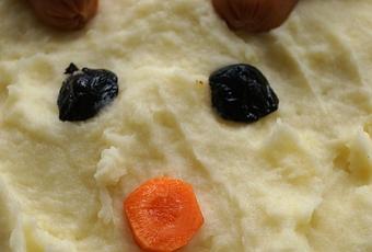 Aujourd'hui pas de Recette, juste la Purée avec des Saucisses réalisée pour "Petit Fils Chéri", le nez avec une demi tomate cerise ou une rondelle de carotte, les yeux avec deux morceaux d'olives noires ou deux petits pois ...