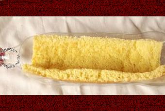 Vous pouvez aussi mettre du rhodoïd dans un moule à cake en le scotchant aux bords pour qu’il prenne une forme arrondie.